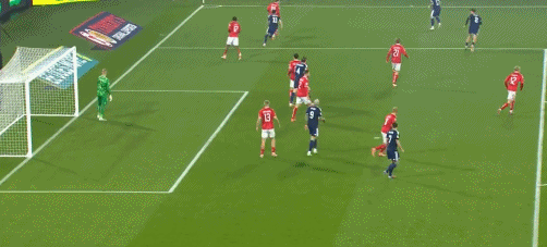 第4分鐘,本-多克傳中,麥克托米奈驚天倒鉤破門,蘇格蘭1-0