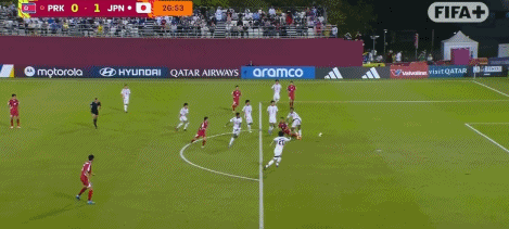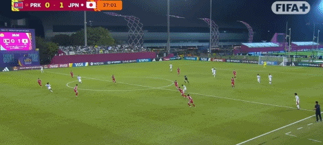 第4分鐘,瀨口大翔傳中,麥吉頭球破門(mén),U17日本1-0朝鮮U17